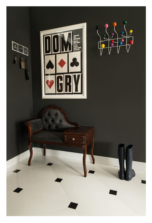 Just like the black and dark colors in the apartment - it is something! In Poland, as well like this black and white apartment in Poland, Lucyna Kolodziejska designer created a project apartment for a family of three persons - 3 bedrooms, kitchen-living room and two bathrooms. The apartment is modern and comfortable, the interior is a lot of antique and vintage items. Look!